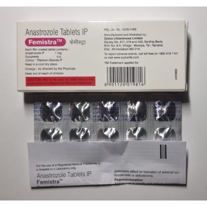 Анастрозол 1мг. у пачці 10 таблеток. Випускається фірмою (Femistra) Індії. Вся продукція цієї фірми досить високої якості та користується популярністю серед спортсменів. Анастрозол від (Femistra) купують із метою знизити високий рівень естрадіолу на курсі прийому анаболічних стероїдів. Зниження ефекту ароматизації це головне завдання для багатьох спортсменів. Саме Анастрозол допомагає швидко впоратися з цим неприємним явищем.